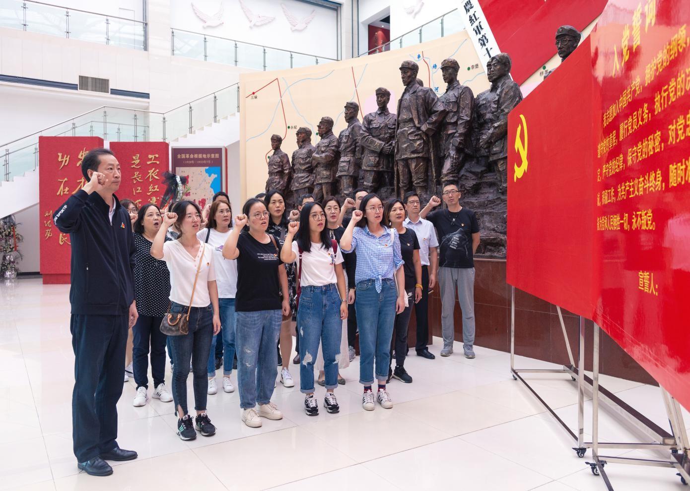 下午,全体同志来到红十四军纪念馆,参观了5个主题展馆,重温了红十四军波澜壮阔的奋斗历程。一幅幅历史图片,一件件珍贵实物,再现了革命先烈浴血奋战、英勇不屈的情景。参观结束后,各支部分别组织党员干部在革命先辈雕像前,面对鲜红的党旗,举起右手,重温了入党誓词。