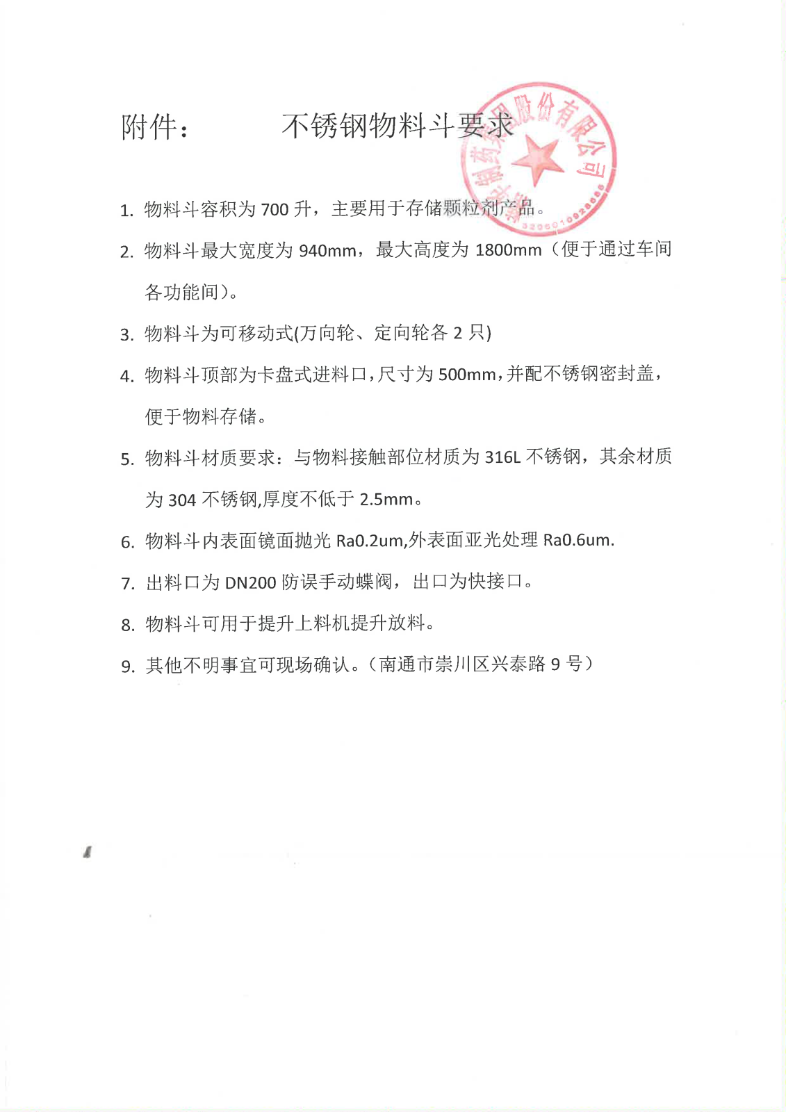 关于不锈钢周转料斗招标,详见下图: